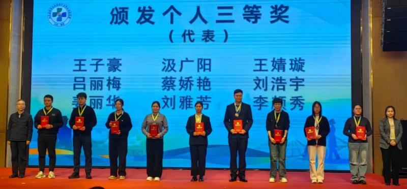 经过多轮紧张激烈的比拼,我院选手凭借过硬的专业技能和稳定的临场发挥,在众多参赛者中脱颖而出,斩获佳绩。其中,江丽娜同志(右一)荣获健康照护赛区一等奖;姜丽华同志(右三)荣获康复治疗赛区三等奖。