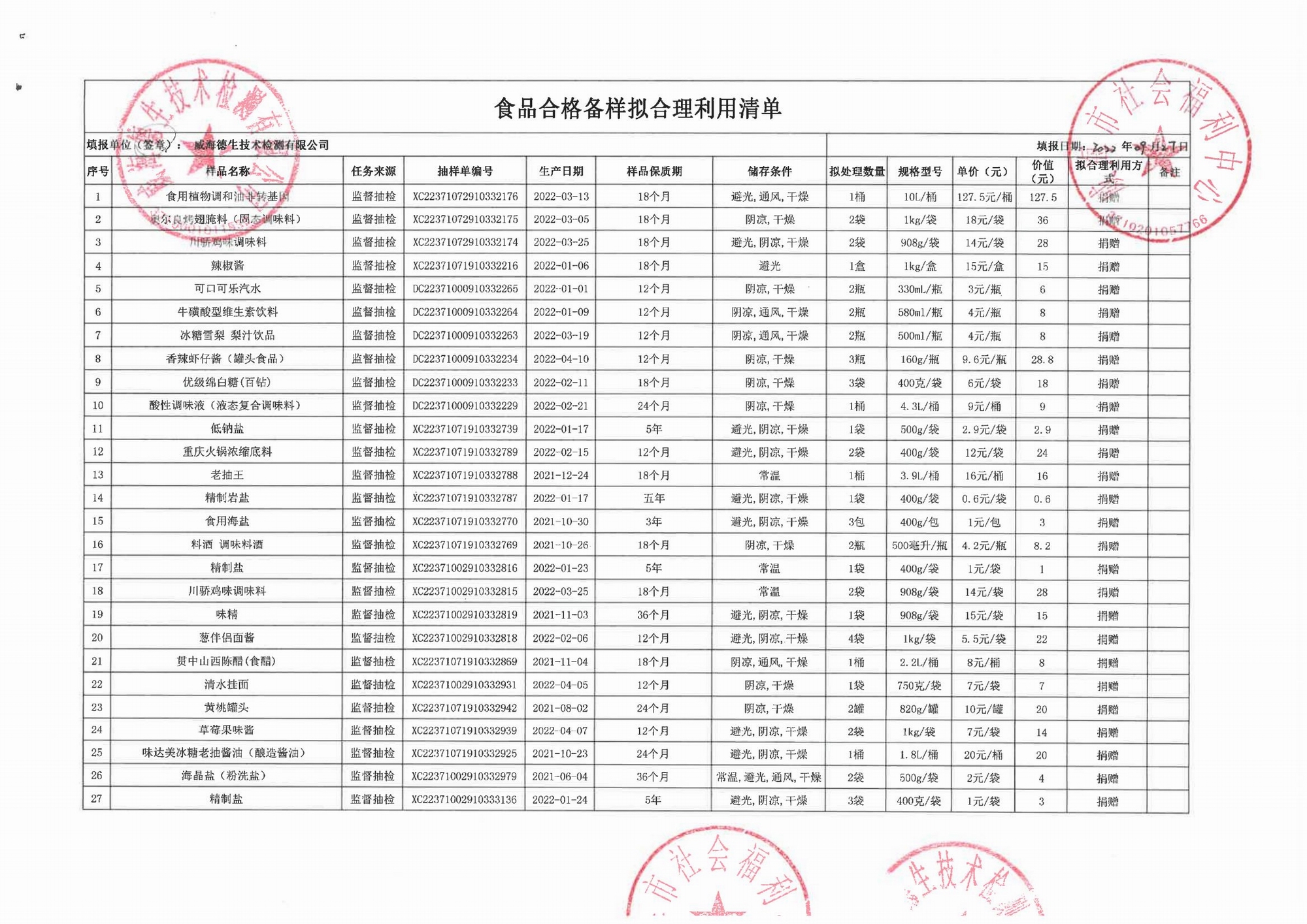 捐赠公示 | 威海德生技术检测有限公司捐赠